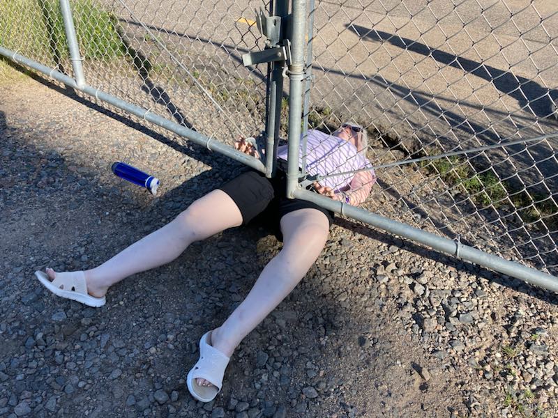 Thank goodness we found this gate with enough clearance to get underneath. Not exactly comfortable but the dust brushed right off and we went on with our walk. We did take the longer route back over the regular bridge.