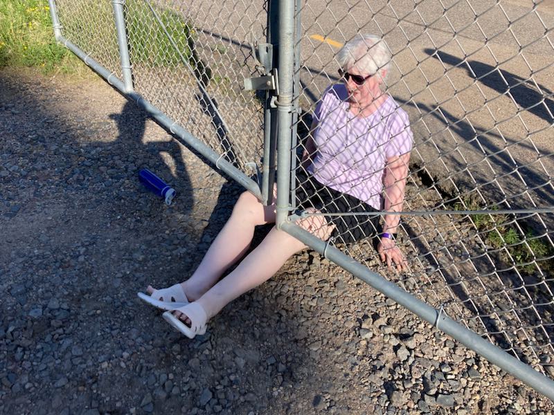 It was a perfect day and we said why not. We were on Nicollet Island so the bride was not that wide. We got across easily. On the other side we were right next to the bike/walk trail which I had ridden a few times. The problem was that there was a tall chain link fence on either side of the tracks. Melissa thought there was an entrance to the tracks from the street or trail a block our two up. There wasn’t. In retrospect, it would have made no sense to have access to rail tracks in downtown Minneapolis except at a station.