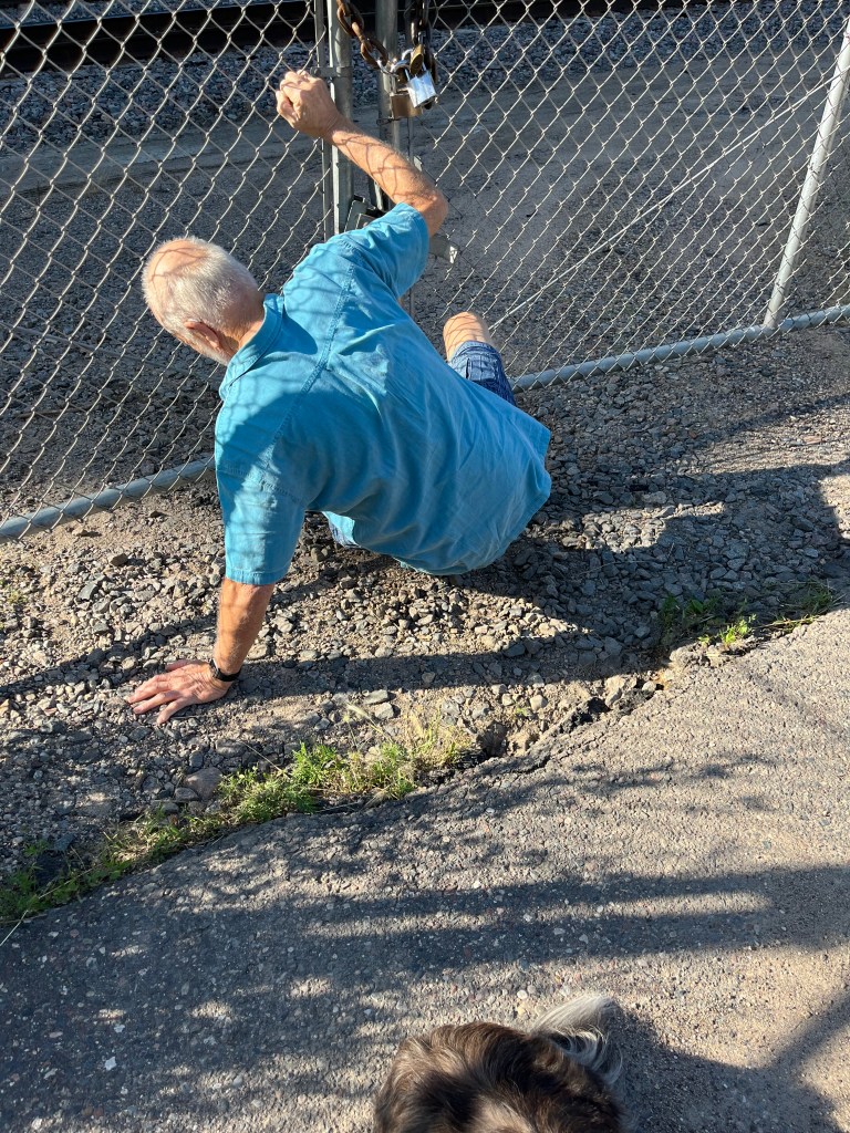 So we had a choice to walk back across the rail bridge or figure out a way around the fence.