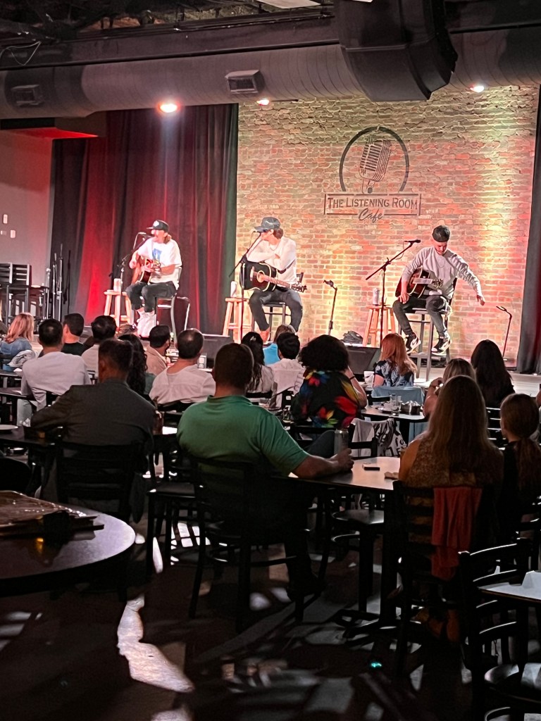 We went to our first songwriter round for research to identify the spot that Craig will feel comfortable participating in an open mic night. He really needs to share his music with more people. We did two venues our first night. The Commodore Grill was first and is a real possibility. The second pictured on the left is the Listening Room which is very touristy and less likely to be a good venue for Craig. When I asked James if he wanted to join us, he said he avoided writer’s rounds like the plague. My only previous experience with writer’s rounds over the years has been ones Natalie has participated in and I realized they were carefully selected individuals. The first round at the Commodore Grill were individuals that could not sing or play the guitar well and I immediately understood his comment. After the first round, the rounds were enjoyable. Each round was 3 artists playing 3 songs. I am going to try to get tickets to the Bluebird on April 30th – the iconic venue. Craig played there in the 90’s once when he was visiting from AZ and would like to perform there again.