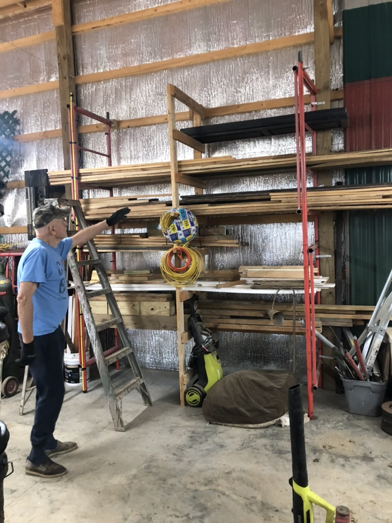It is so fun to be joined by the herd of cows at various times of the day. The major outdoor work is completed and now we are moving on to cleaning and organizing the shop including installation of a hydraulic lift for car maintenance. It is fun to have so many various ways to stay active and gain new skills. I will have my own workbench when we get done. I will hopefully be able to build my own tables to donate for organizations that help unhoused people furnish homes when they get them.