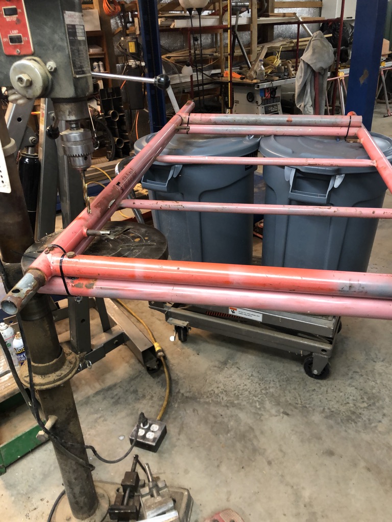 Oly and his son Erick arrived Friday night at midnight. We left for the airport at 1115PM. Craig came in from the shop at 1045 PM satisfied it was ready. Not a minute to spare. The lift was built. We tore down scaffolding and remade it into a lumber rack, removed all the lumber from the existing lumber rack, sorted it and put it in the new very custom lumber rack. Craig created a work bench for me. I cleaned 10 years of sawdust and grime off of the 46 Chevy panel truck that Craig started driving and modifying at age 17. The shop was organized and cleaned up. In the meantime the house had a deep cleaning, the land was mowed and we were ready for Oly.