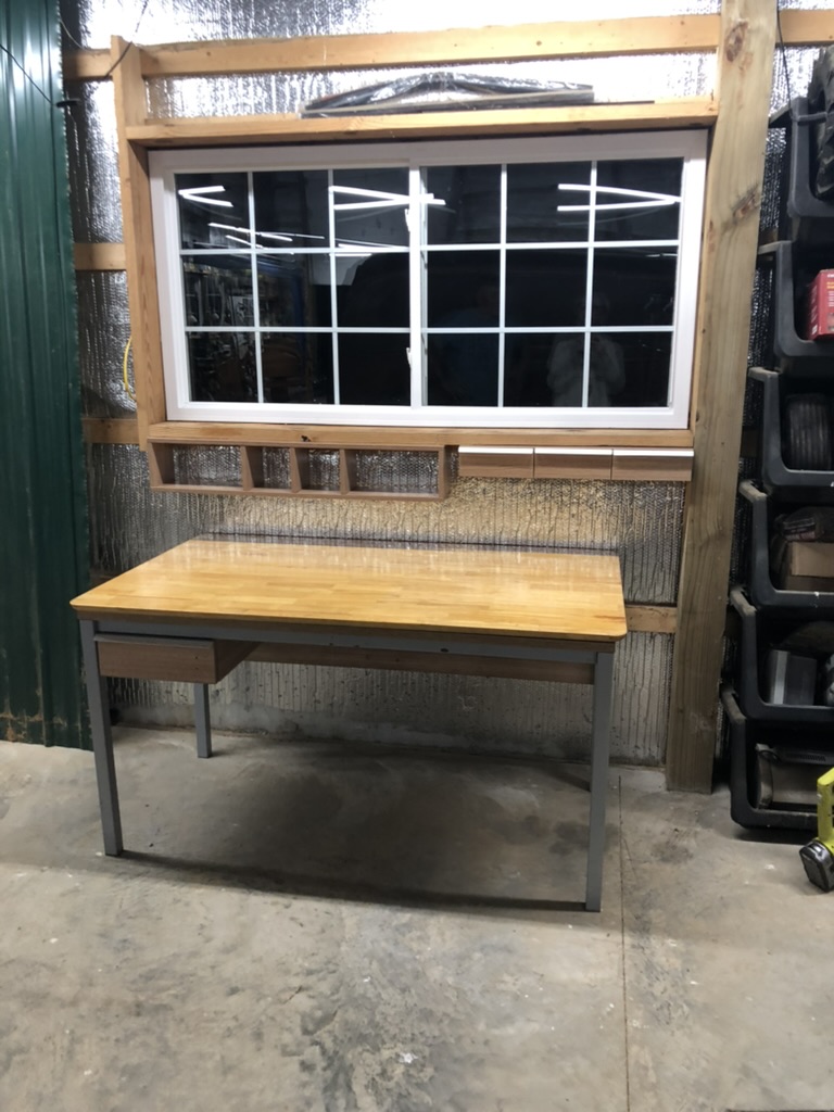 The new lumber rack with wood organized. With this done the last day before Oly’s arrival was spent further organizing and cleaning the shop which included constucting a work bench for me.