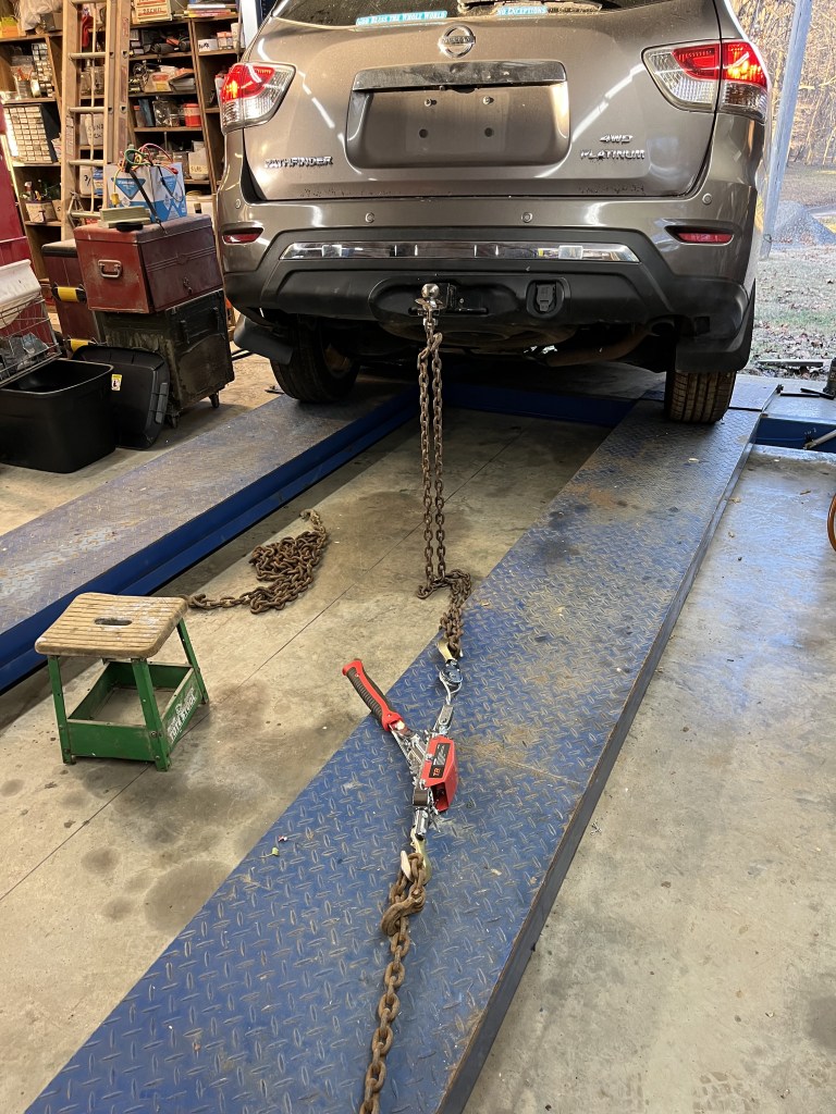 Getting an immobile Nissan from its damaged driver front wheel mechanism on the lift was another feat of creative wenching amongst other things. Craig’s creative problem solving never ceases to amaze me. This was one happy day.