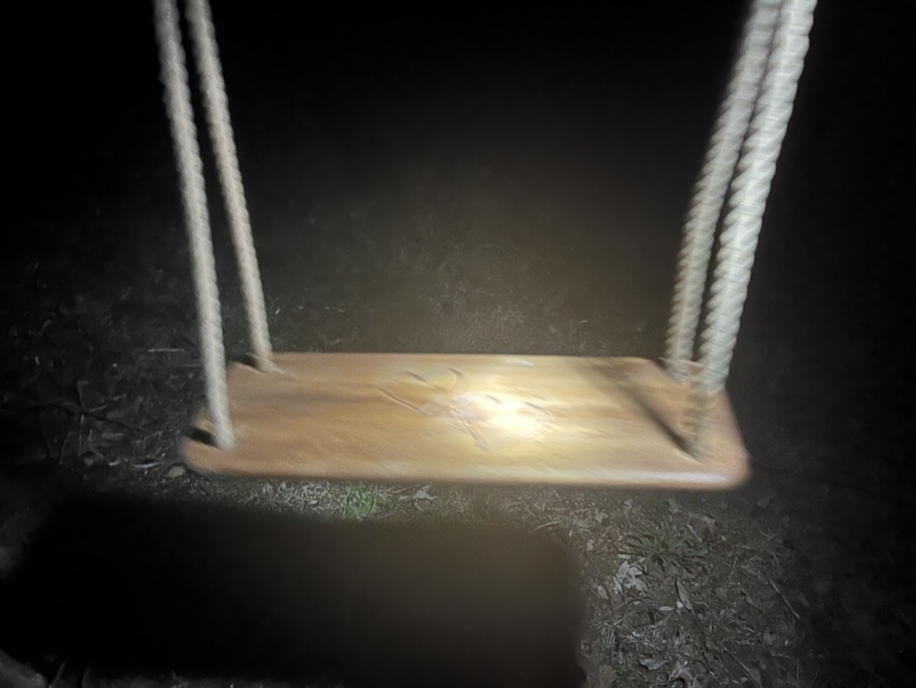 After dark he came in and wanted me to come outside with him. We walked out into the front yard and I found a swing hanging from a tree. Unbelievably sweet. He said he needed to make a couple of adjustments before I could swing in it. It wasn’t until the morning that I could appreciate how high the branch was that it was attached to.