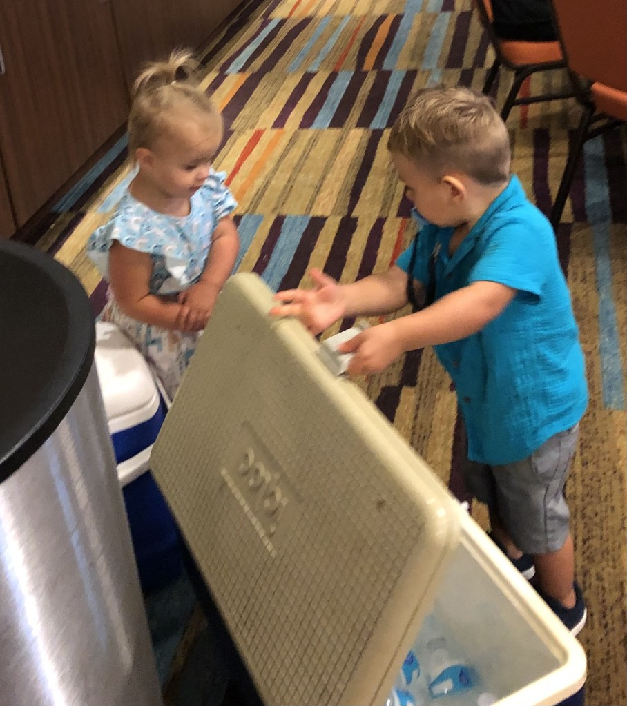 Having young kids at the gathering after the funeral is a lovely reminder of the circle of life. These 2 spent a long time negotiating over the cooler of water bottles.