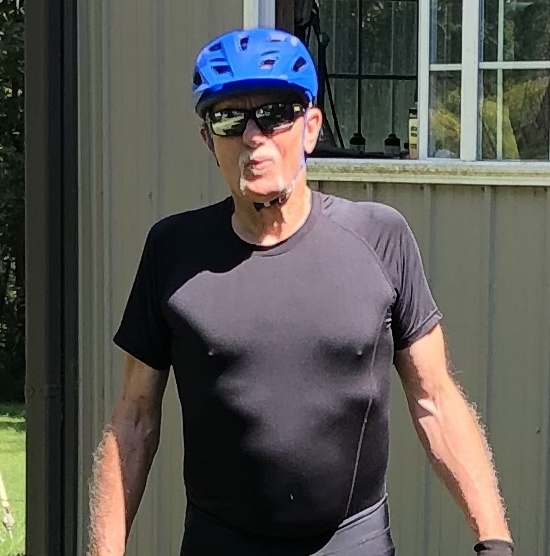 Craig did a great job picking out his cycling helmet. Blue is definitely his color. We were fortunate to be able to borrow two bikes that had big enough frames for Craig – a trial bike and a road bike like mine for him to try to see if he indeed will enjoy cycling and to get some sense of what kind of bicycle he will feel most comfortable on. He liked aspects of both bikes. While there are many things to still figure out, the bottom line is that he enjoyed cycling in spite of some discomfort from saddle amongst other issues. We road a total of 6 miles on his paved country road. From my perspective there was just the right amount of rolling hills. We went out and back so it is possible that there will be some more challenging hills as we create our loops. We should be able to create 8, 10 and 20 mile rides from here. I think the ride reassured Craig that he will be able “to keep up with me”. I was never concerned about it.