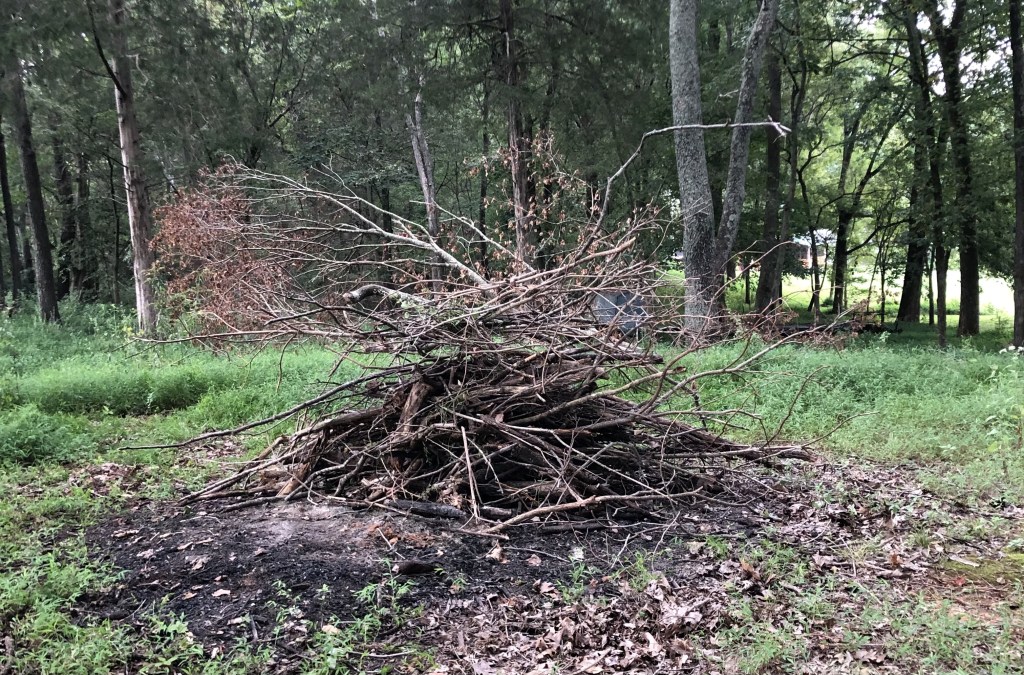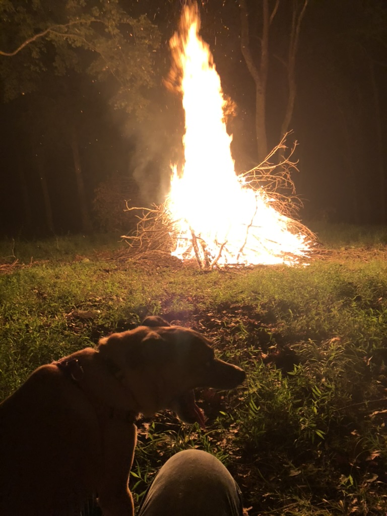 Two acres with lots of trees means lots of sticks and fallen branches that must be dealt with to keep the area mowed. The weather on this Labor weekend has been perfect for picking up sticks and then having a bonfire of the first of many batches. I love being outdoors, sweating and the functional exercise. After so many years of being reasonably sedentary, this opportunity to be constantly active is just what I was looking for…