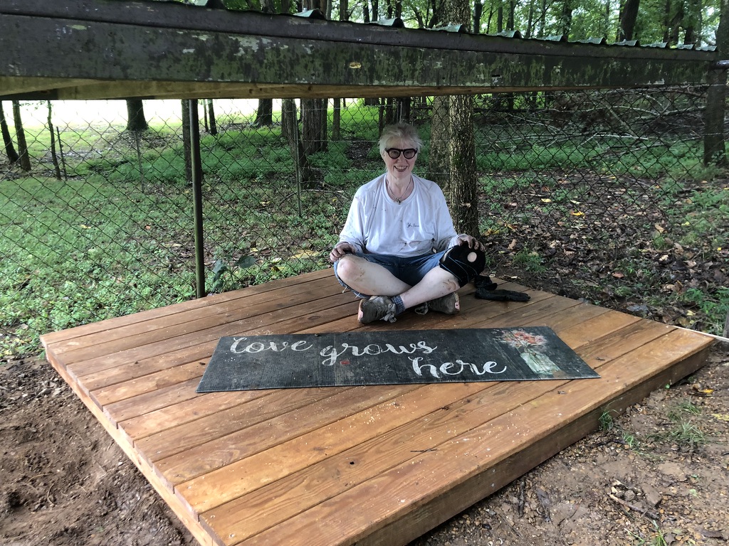 We worked hard Tuesday and Wednesday to get the platform (which I call the doggie patio) built so it would be ready for Habitat on Friday.
