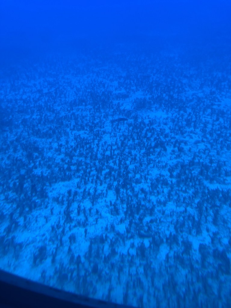 This is sea grass at bottom. It is responsible for creating about 5% of the white sand- fish droppings is responsible for the other 95%.