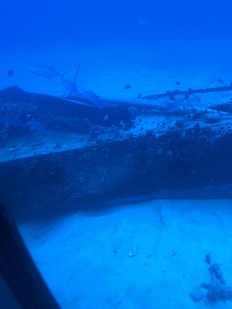 The ship anchored outside of Kona and we took a life boat into a pier. We started with our Atlantis submarine tour and went down to a depth of 100 feet – as far down as the ocean goes in this location. That is below the coral reefs and it looked a bit like snow on the floor. After that we waled around the town a bit and stopped for some Thai food. I had Pad Thai and experience “happy mouth”. Carol had some spring rolls. We walked back to pier and got on next boat back to ship. Carol was pretty tired and is now nappy on the warm humid balcony. I have showered and intend to stay in the air conditioning until later. I fully intend to take in the entertainment at 730 PM tonight.