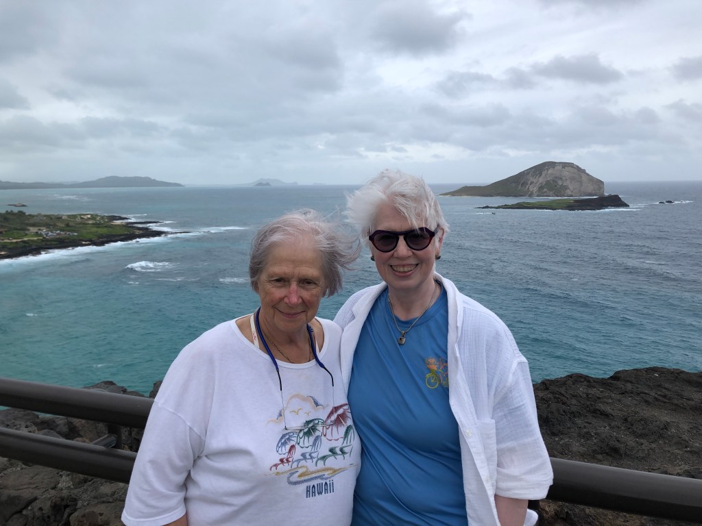 We were able to watch the NCAA Women’s Championship game from a home with a stunning view of Honolulu and the ocean. The Iowa Hawkeyes played a good game but the LSU Tigers were “on fire”. After the game we got some Korean takeout with the intent of going up to the Punchbowl park for a picnic lunch. We knew there was a chance of rain but it had looked overcast all morning. Within a 10 min drive we went from no rain to monsoon like rain to a degree that made driving visibility challenging. Terry knew the route up the mountain well as she used to live up there in college. After we got to the top, we turned around and came back to her condo and ate our lunch. As she had indoor parking we did not need to get soaked. The storm lasted an hour. The temperature dropped and it was windy. It is raining again now.