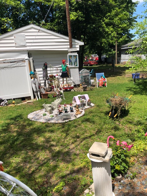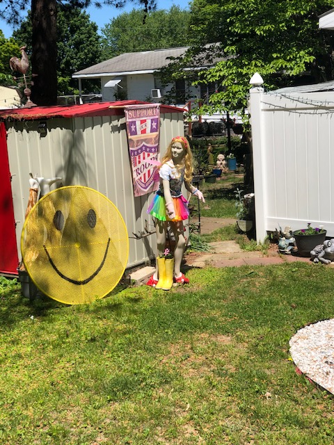 We modified our ride plan and still got our 20 plus miles in. Along the new Lewes-Georgetown trail there was this fabulous backyard that seemed to have been created to entertain cyclists and walkers. There was so many unusual things in the yard, that you could notice something new every time you went by. I look forward to riding by this yard again on Thursday before I leave for Philadelphia.