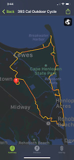The bike ride was great. We rode into and around Rehobeth Beach, including by President Biden’s summer home, along the boardwalk and through Cape Henelopen Stage Park. There were really nice bike trails for most of the ride and wide bike lanes for vast majority of the street riding. I even got to see some dolphins playing in the ocean. While there are not many hills on this ride, it was beautiful. I learned today that activity tracker on the iPhone will map the ride – AWESOME.