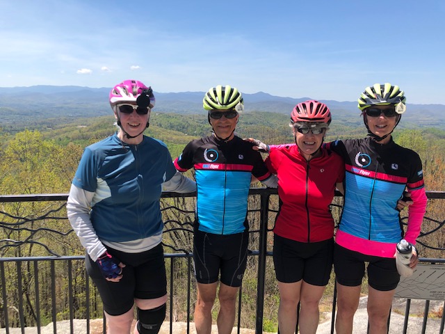 As the morning progressed, I came to understand that I was meeting with the 3 persons I would be riding with at the bottom of the steep climb – a much longer ride uphill than I have ever attempted before. As I am really trying to just say yes to physical challenges put in front of me, I had to go with it. Hendersonville is at 2100 feet and the Jump off Rock is 3100 feet. Believe me, it seemed like more than a 1000 foot climb.