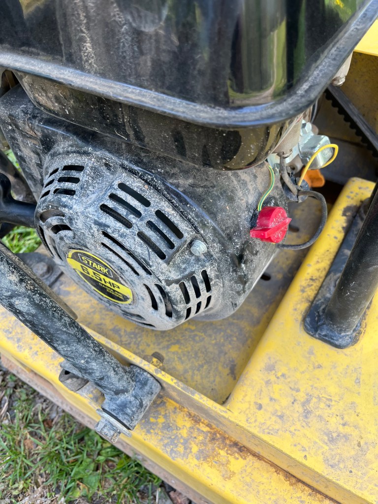 While I was in Nashville Thursday Craig was repairing the driveway by moving gravel from the bottom of the hill and spreading it across the parts that were washed out. The driveway was ready for compacting. Friday, he had to make an unexpected trip to Nashville VA because one of his hearing aids broke. I received instruction on staring the compactor before he left. I even took a picture of the red button that needs top be turned UP to help remind me. I proceeded to soak the gravel with water which took about 30 minutes and took a bio break to “fill and empty.”, I went to start the compacter, I pulled on the string dozen times and then called Craig. Of course, he immediately asked if I had turned the switch to ON, which I had forgotten. This is amusing and horrifying at the same time – especially since I had taken a photo of a crucial step I had been concerned I was likely to forget.