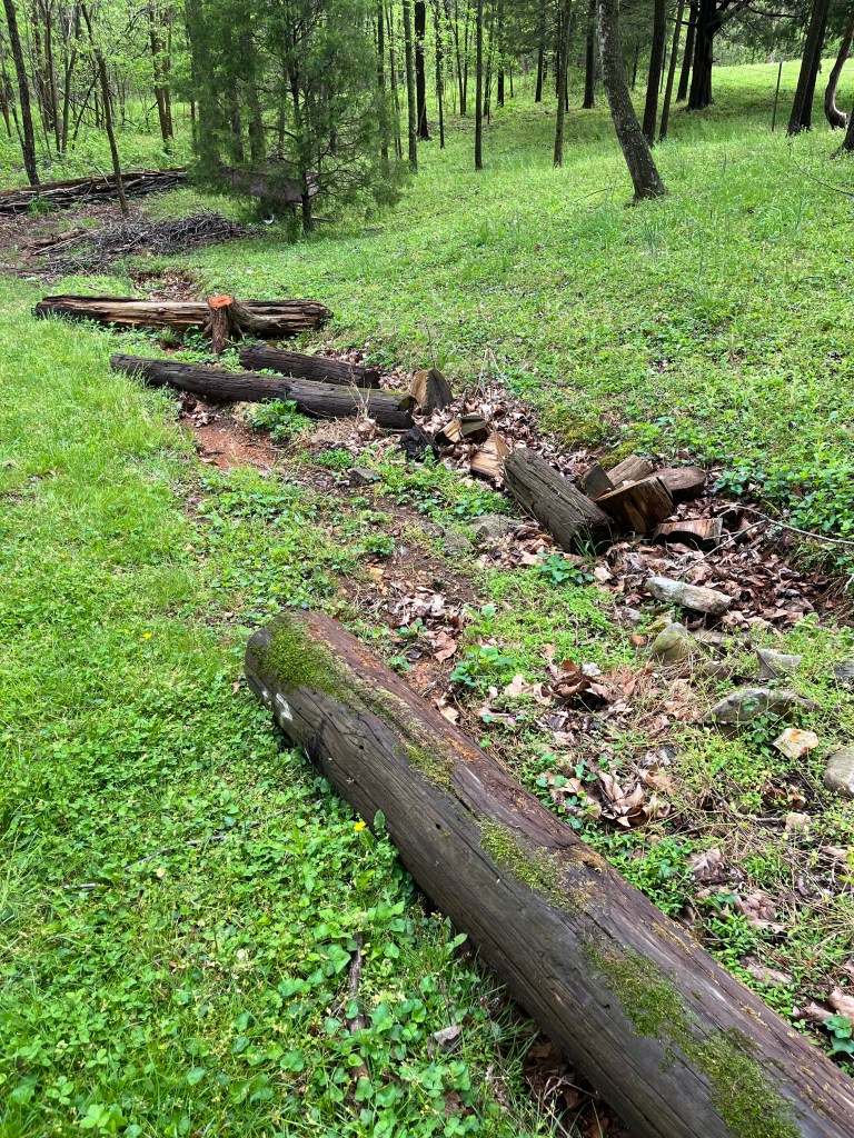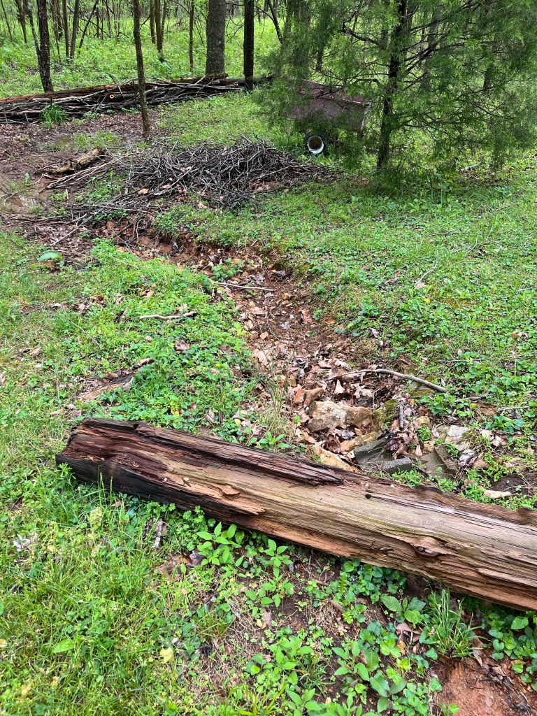 We are expecting .5 inches of rain on Thursday, Friday and Saturday. 1.5 inches will give us some idea of how we are doing. We have continued to move fallen logs to fence lines and along grass edges in attempt to mitigate flow of water across the driveway. Everything we have done over the past year has helped BUT we have plenty of other mitigating retaining walls to build in the yard itself before we are done.