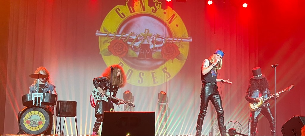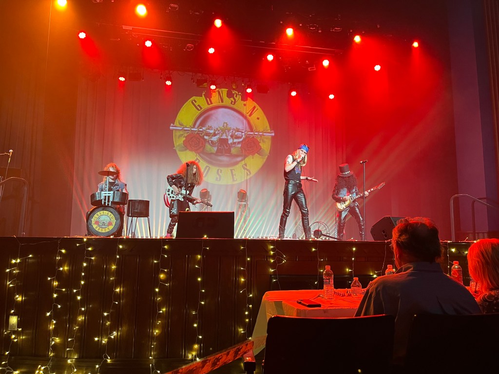 There were 3 judges in a “roped off” area right below the stage. This was a serious production that was well-executed. The youngest contestants were 10 y/o and the oldest were many decades older. The performers “acted” their roles. The Guns’ and Roses group “sang” Sweet Child ‘O Mine. They were in the 12 and under category. Craig assured me he was that tall when he was 12.