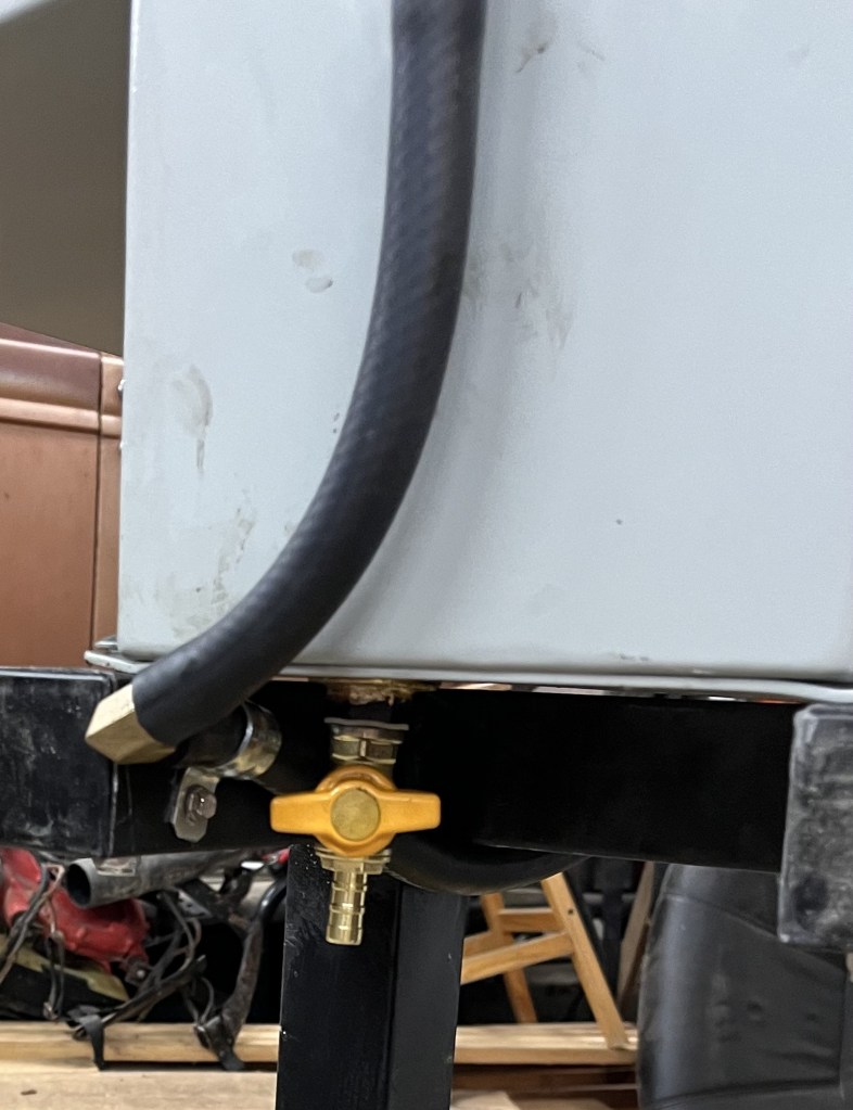 In the meantime, he used an old bed frame to make the metal support frame to hold the tank and secured it to a wooded platform on wheels so it could be moved around. The metal bed frame is a lot thinner metal that what he is used to working with so his welding skills improved. Once the tank arrived he had to customize it for the following functions. The soaking solvent needed to be pumped out, filtered and then pumped back into the opposite end of the tank to move the solvent from one end to the other to improve cleaning. While the filtered solvent can be reused for a long time, eventually it will need to be changed so he added a drain to the tank.